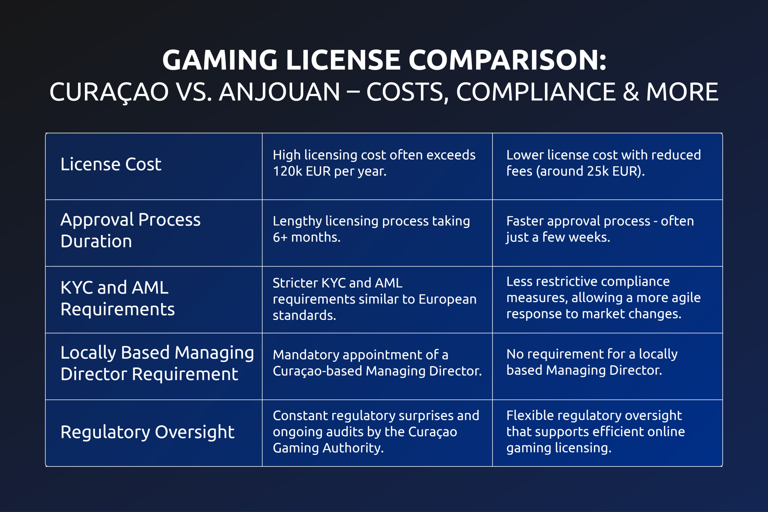 Gaming License in Anjouan vs. Curaçao License: Key Cost & Compliance Factors